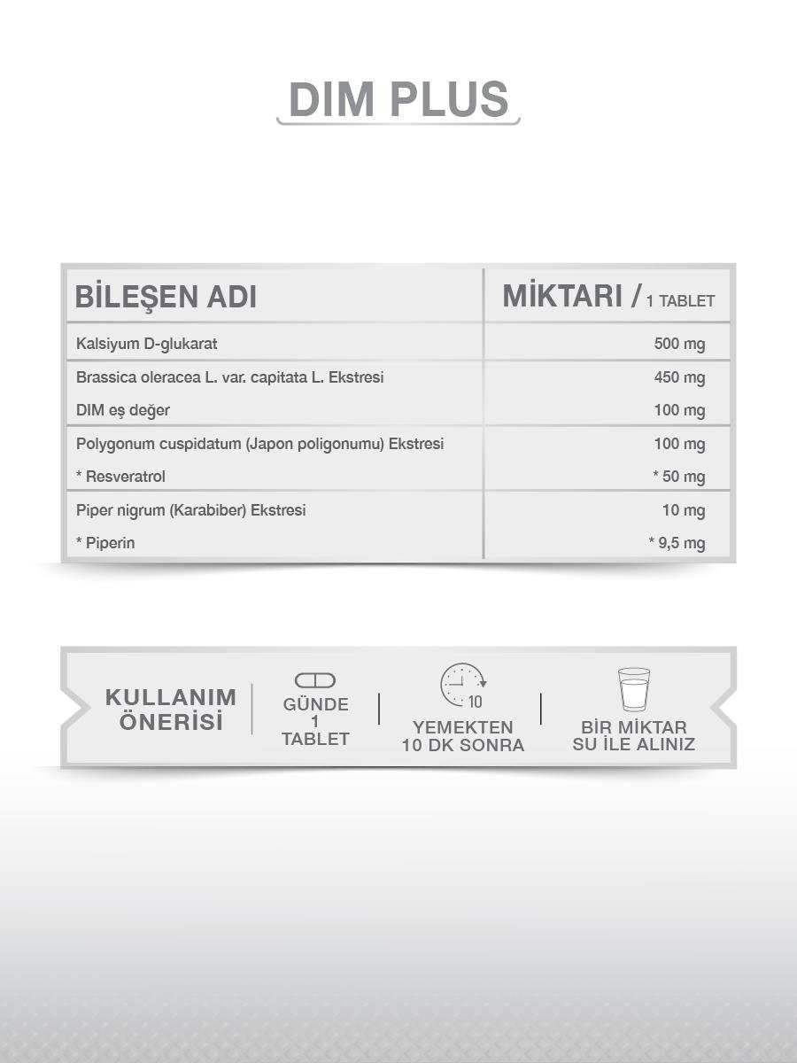 İçindekiler: Kalsiyum D-glukarat, Brassica oleracea L. var. capitata L. (Lahana) ekstresi, Hacim artırıcı (Mikrokristalin Selüloz (E 460 (i)), Polygonum cuspidatum (Japon poligonumu) ekstresi (Resveratrol) , Stabilizör (Çapraz bağlı sodyum karboksimetil selüloz Polivinil Prolidon), Piper nigrum (Karabiber) ekstresi (Piperin), Topaklanmayı önleyici (Yağ asitlerinin magnezyum tuzları, silikon dioksit ).