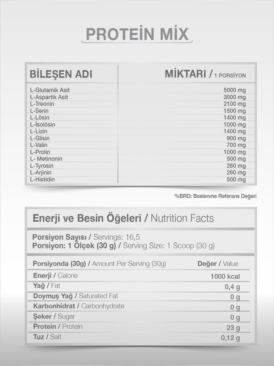 1 Porsiyon: 30 gr 1 Porsiyon : 23 gr Protein 1 Kutu 500 gr